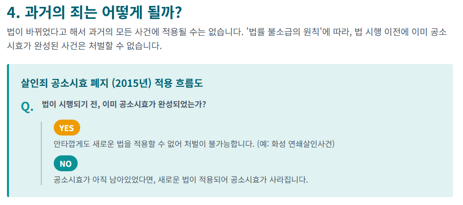 어떤 끔찍한 범죄들은 시간의 흐름으로 용서받을 수 없다는 사회적 합의에 따라, 아예 공소시효라는 개념 자체를 적용하지 않습니다.