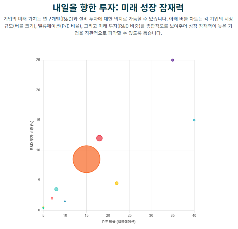 • 미래는? 삼성전자의 미래는 AI에 달려있습니다. AI의 '뇌' 역할을 하는 HBM 반도체부터, 우리 손안의 AI 비서 '갤럭시 AI'까지, 하드웨어와 소프트웨어 양쪽에서 AI 시대를 이끌고 있습니다. 삼성전자에 투자하는 것은 AI 혁명의 가장 확실한 티켓을 사는 것과 같습니다.