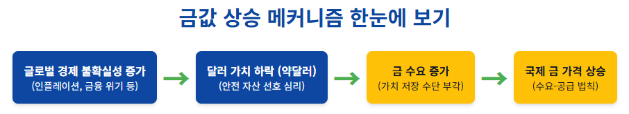 2. 국내 경제 불안 → 원화 가치 하락 (환율 상승) → 국내 금값 또 상승!