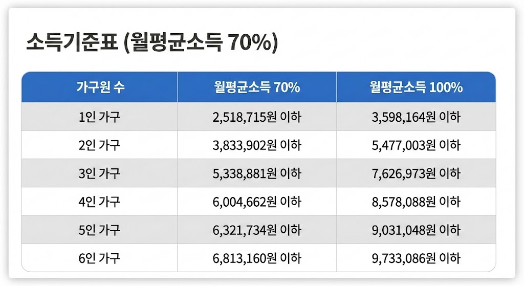 📊 도시근로자 가구당 월평균소득 70% 기준