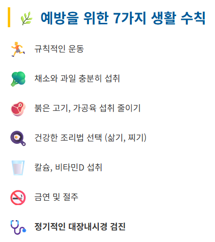 [대장암 예방을 위한 7가지 핵심 생활 수칙]