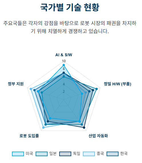 • 한국 (추격자): 대기업의 시장 진입이 본격화된 가운데, 핵심 부품 국산화와 AI 소프트웨어 분야에서 강력한 스타트업 생태계가 함께 성장하고 있습니다.