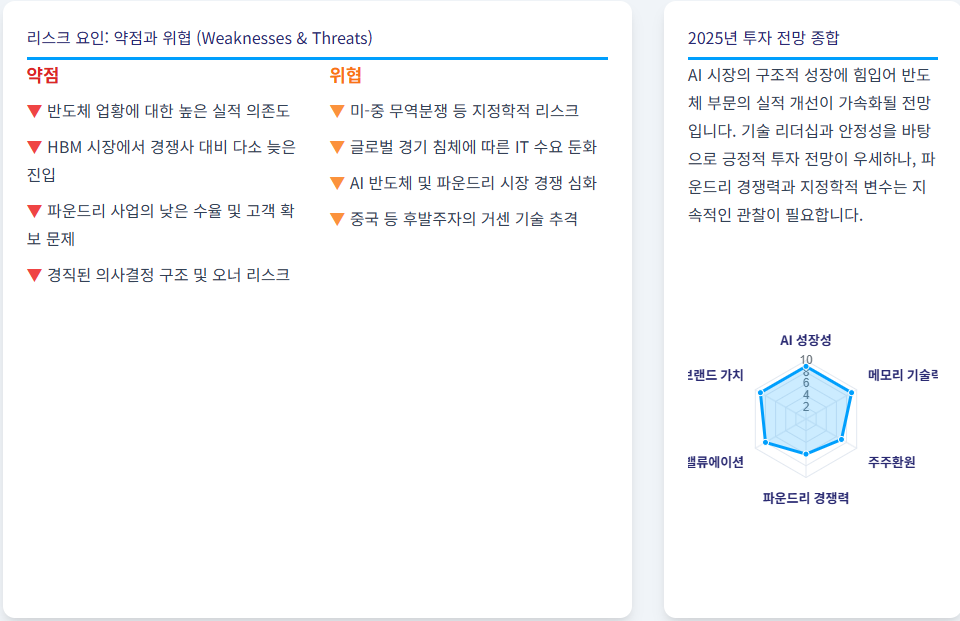- HBM, 파운드리 등 가장 중요한 미래 성장 동력에서 경쟁사에 뒤처진 상황