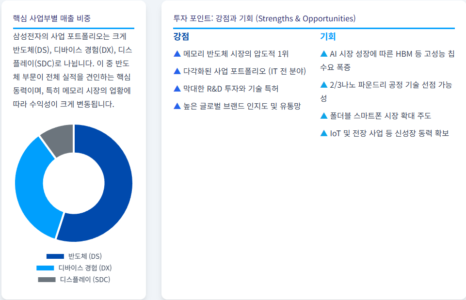 - 메모리, 파운드리, 스마트폰, 가전을 모두 아우르는 막강한 사업 포트폴리오