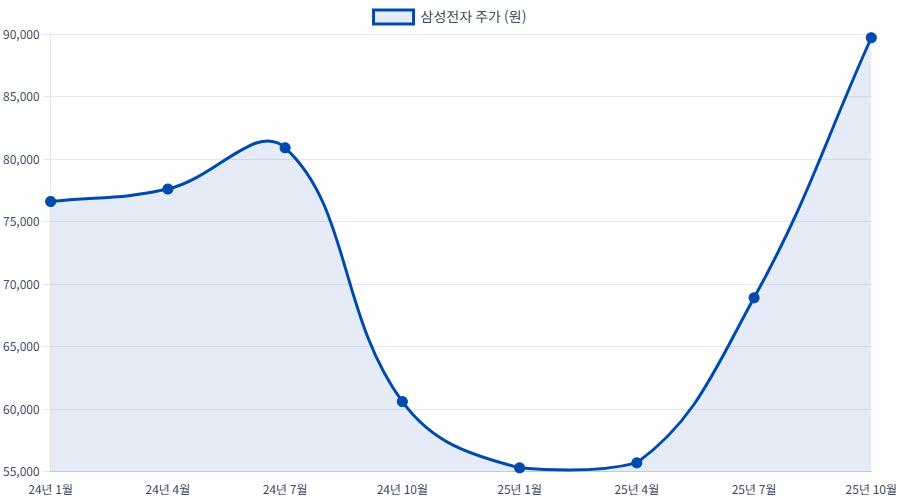 숫자가 말해주는 것은 명확합니다. 현재 주가는 과거의 실적보다는 미래에 대한 '엄청난 기대감'을 반영하고 있다는 것입니다. 지난 1년간 주가가 45% 이상 급등한 것이 그 증거죠. 시장은 삼성전자가 곧 다가올 AI 시대에 엄청난 이익을 낼 것이라고 믿고 베팅하는 중입니다.