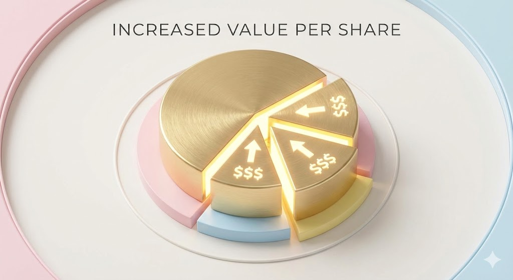 자사주를 소각하면 전체 주식 수가 줄어듭니다. 회사가 버는 돈(당기순이익)은 그대로인데 주식 수가 줄어드니, 주식 1주당 돌아가는 이익인 EPS는 자연스럽게 올라가게 됩니다.