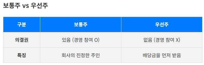 • 핵심: 우선주는 의결권을 포기하는 대신, 배당금을 받거나 회사가 청산할 때 보통주보다 먼저 돈을 받을 권리를 가집니다.