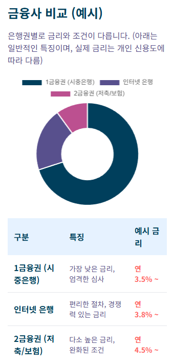 - 총비용 비교: 단순히 최저 금리만 보지 말고, 우대 조건과 부대비용까지 꼼꼼히 따져보세요.