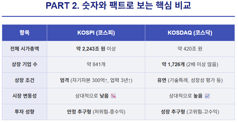 구분 코스피 (KOSPI) 코스닥 (KOSDAQ)