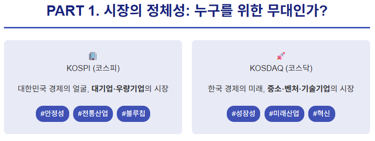 코스피와 코스닥은 단순히 주가 지수만을 의미하지 않습니다. 각기 다른 성격의 '시장' 그 자체를 의미하기도 합니다.