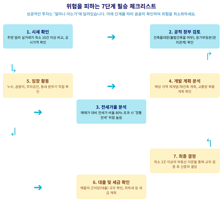 어떤 지역의 빌라를 보든, 가장 먼저 해야 할 일은 서류와 현장을 통해 집의 진짜 모습을 파악하는 것입니다. 이 과정만 잘 거쳐도 90%의 위험은 막을 수 있습니다.