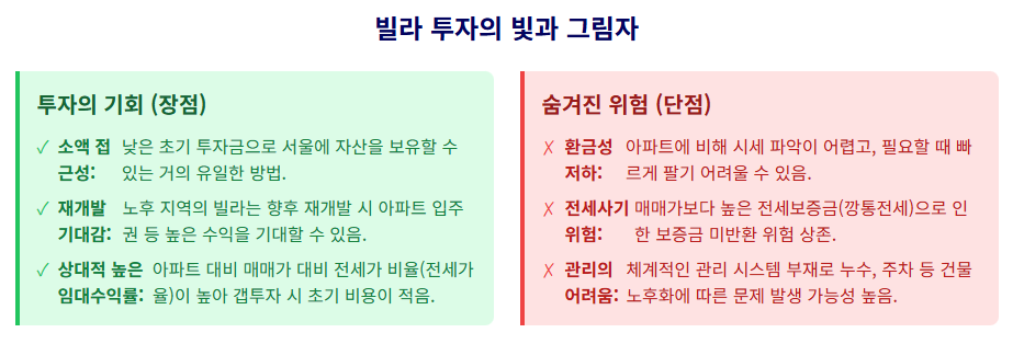 서울에서 1억 원 미만으로 빌라를 구매하는 것은 '수익'을 내는 투자가 아니라 '위험'을 관리하는 과정에 가깝습니다.