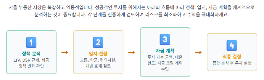 2025년 서울 부동산 시장은 '장기적인 상승 기대감'과 '단기적인 대출 압박'이 팽팽하게 맞서는 곳입니다. 이제 당신의 상황에 맞는 맞춤 전략을 세워야 할 때입니다.