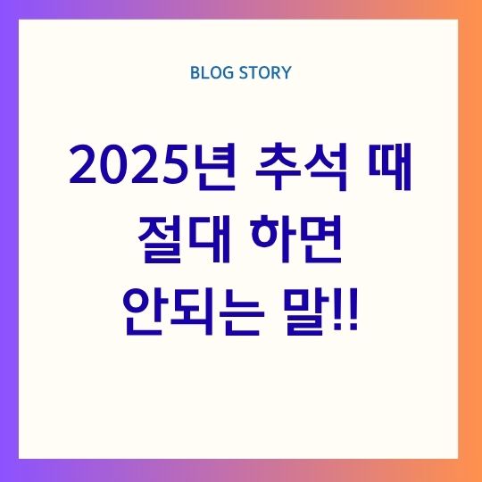 이번 글에서는 2025년 추석 때 절대 하면 안 되는 말과 그 이유, 그리고 대처법까지 정리해 보았습니다. 즐겁고 화목한 명절을 보내기 위해 반드시 알고 있어야 할 말과 행동, 지금부터 하나씩 살펴보겠습니다.