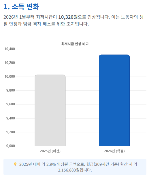 - 최저임금 10,320원: 드디어 최저시급이 1만 원을 넘었습니다. 월급으로 환산하면(주 40시간 기준) 약 215만 6,880원입니다. 편의점 아르바이트부터 직장인까지 모든 근로자에게 적용됩니다.