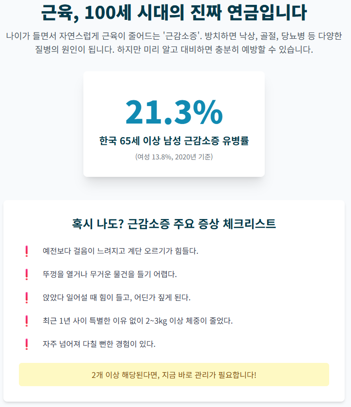 근감소증은 단순한 노화 현상이 아니라 심각한 건강 문제로 이어지는 시작점입니다.