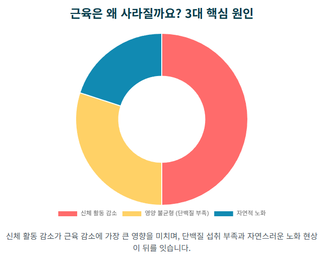 - 만성질환 악화: 근육은 우리 몸의 가장 큰 포도당 저장고입니다. 근육량이 줄면 혈당 조절 능력이 떨어져 당뇨병이 발생하거나 악화되기 쉽고, 기초대사량 감소로 심혈관 질환 관리도 어려워집니다.3