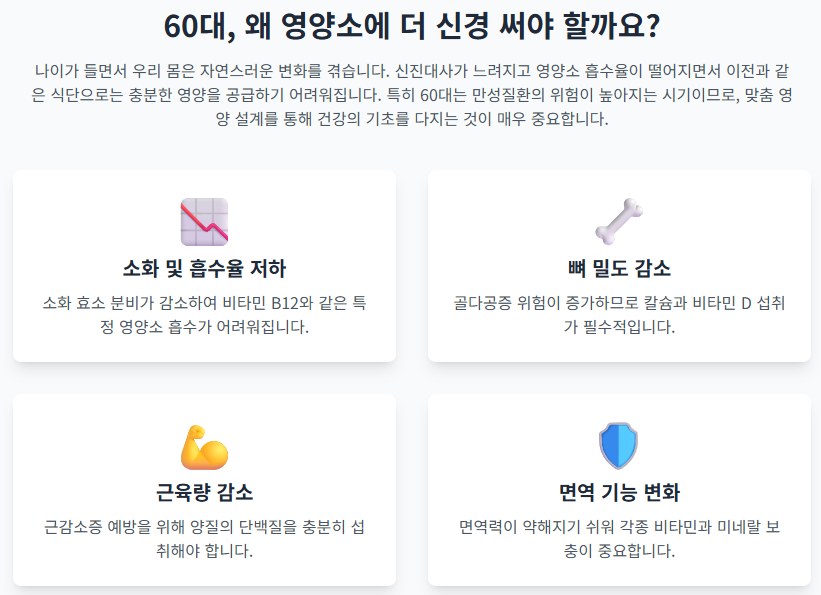 1. 60대, 왜 영양제에 더 신경 써야 할까요? 우리 몸의 변화 신호 3가지