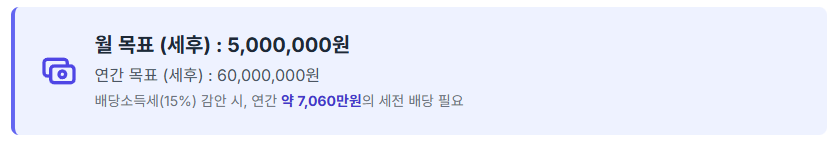 결국 '세후 월 500(연 6,000)'을 받으려면, 은퇴자는 연 6,830만 원, 고소득 직장인은 연 8,500만 원의 '세전 배당'을 받아야 한다는 계산이 나옵니다.